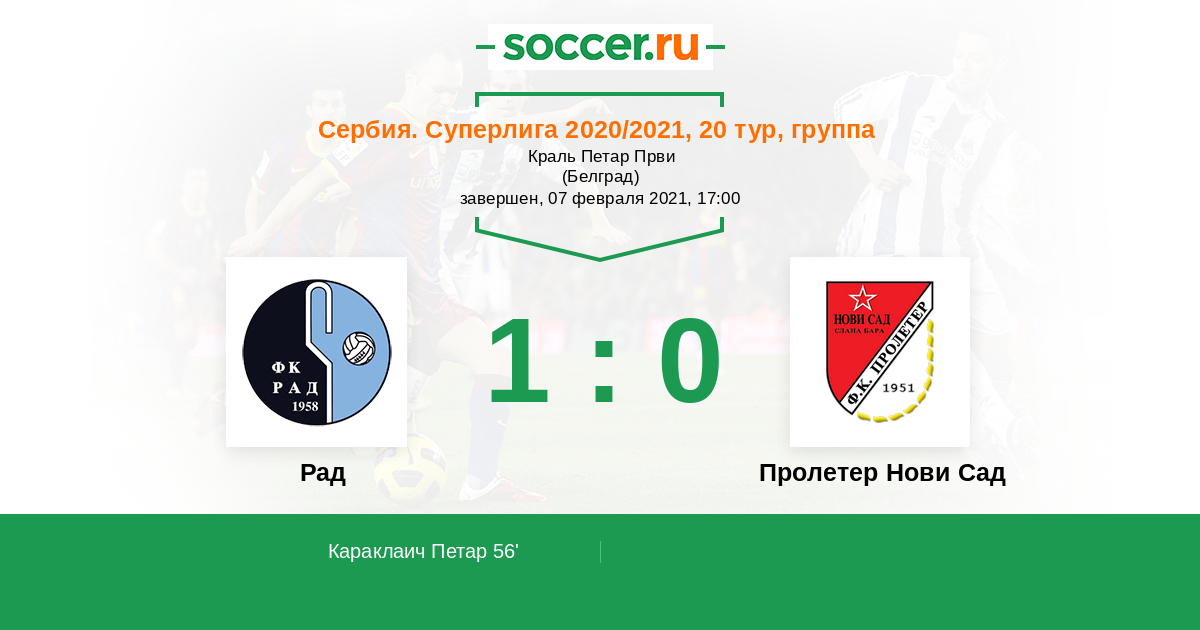 Рад - Пролетер Нови Сад: обзор матча 7 февраля 2021
