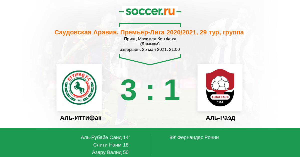 Аль-Иттифак - Аль-Раэд: обзор матча 25 мая 2021