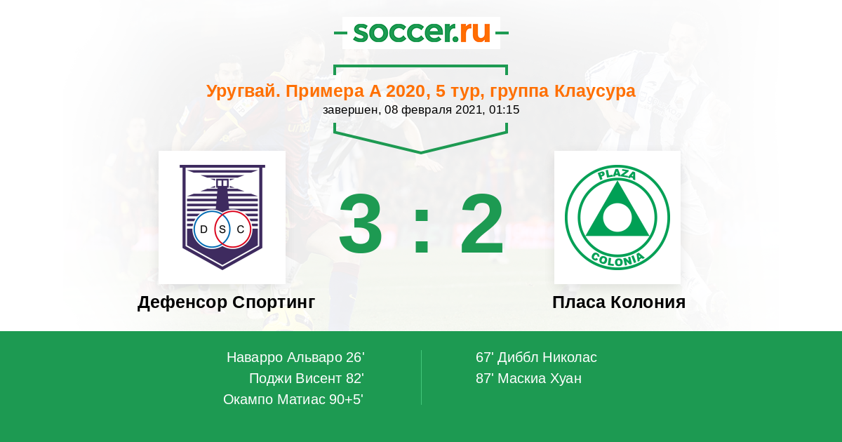 | 5. | Пласа Колония | 15 | 7 | 4 | 4 | 6 | 28:16 | 25 |