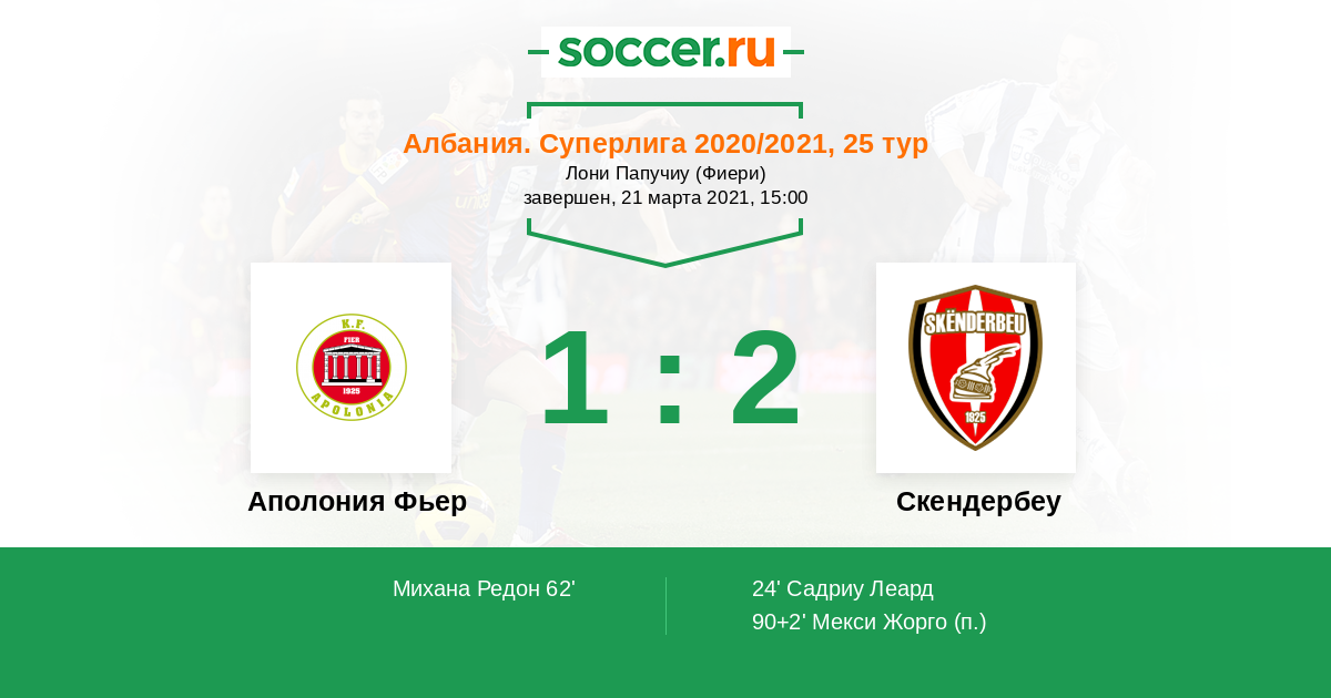 Аполония Фьер - Скендербеу: обзор матча 21 марта 2021