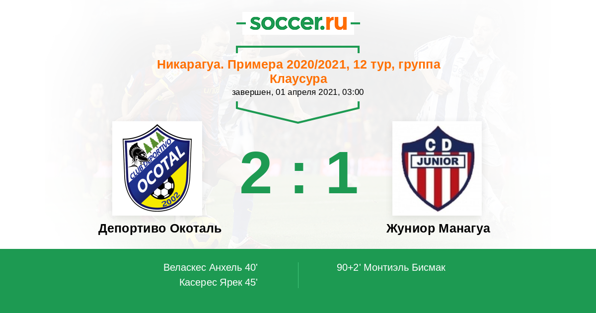 Депортиво Окоталь - Жуниор Манагуа: обзор матча 1 апреля 2021