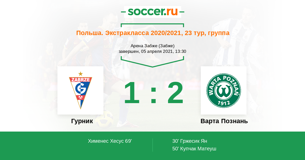 Гурник - Варта Познань: обзор матча 5 апреля 2021