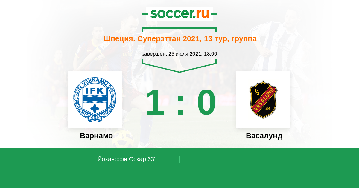 Варнамо - Васалунд: обзор матча 25 июля 2021