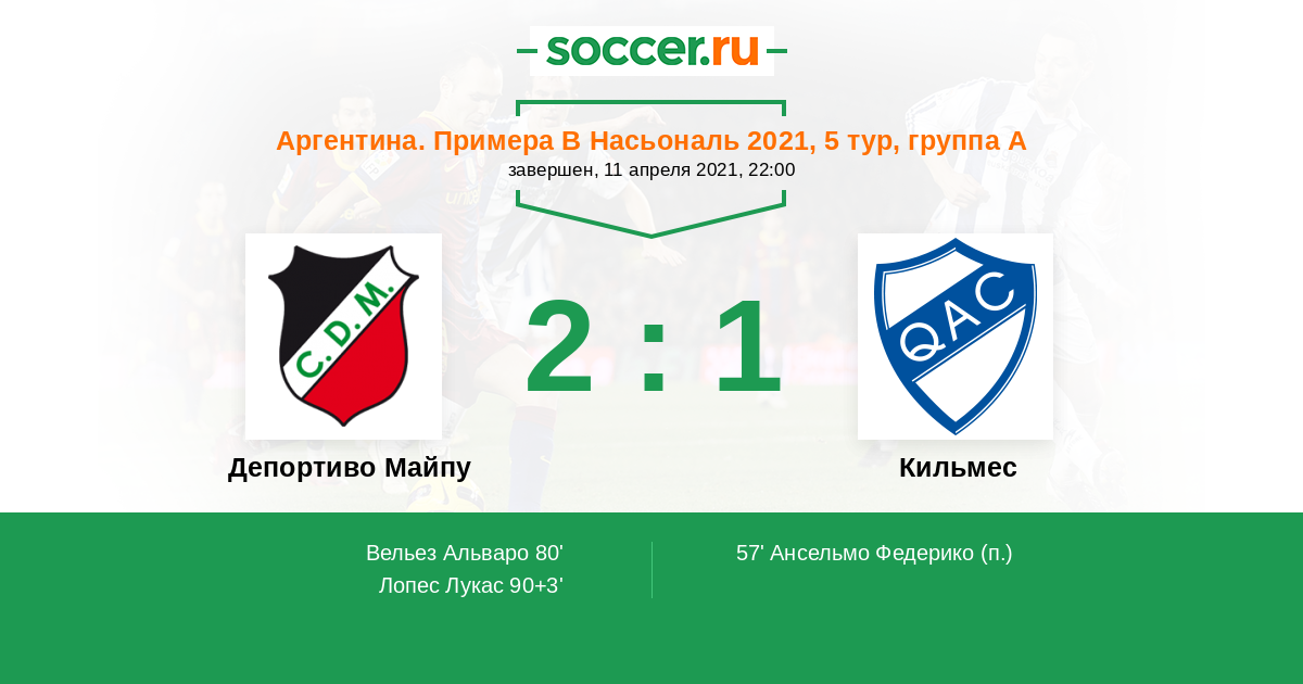 Депортиво Майпу - Кильмес: обзор матча 11 апреля 2021
