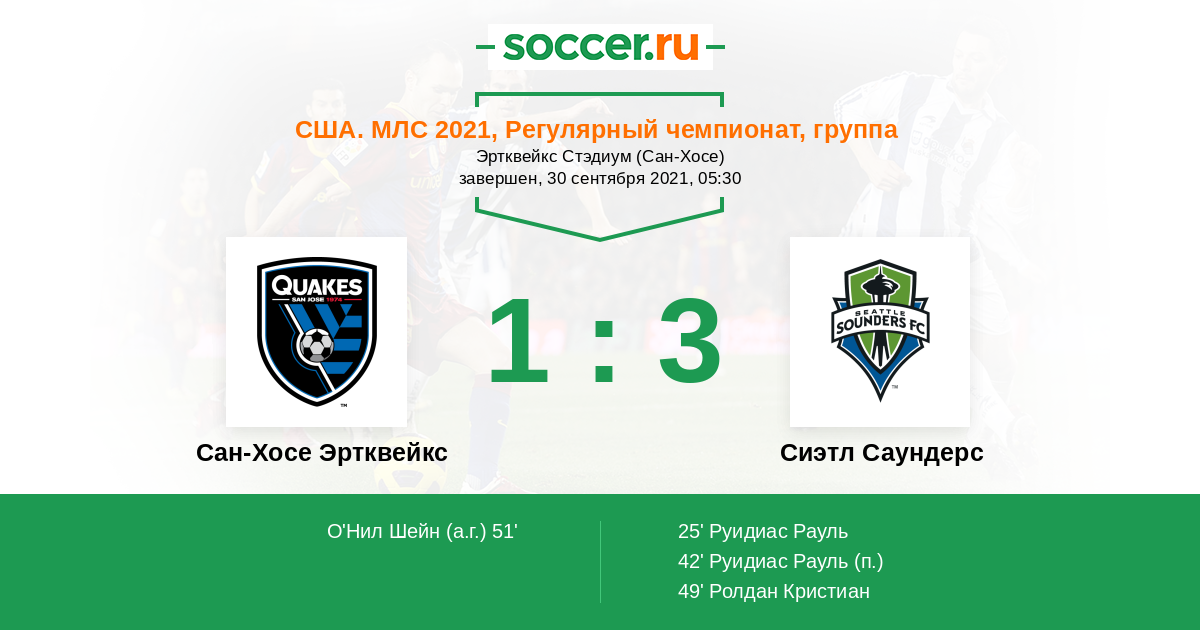 Сан-Хосе Эртквейкс - Сиэтл Саундерс: обзор матча 30 сентября 2021