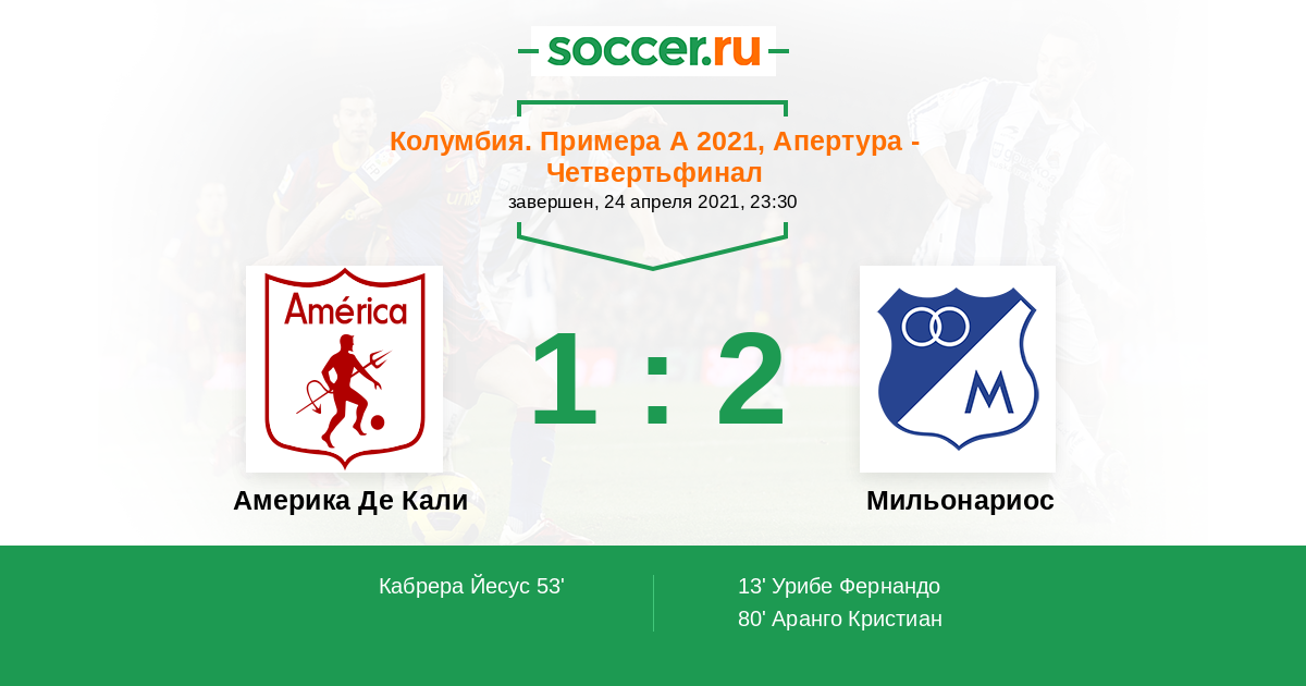 Америка Де Кали - Мильонариос: обзор матча 24 апреля 2021