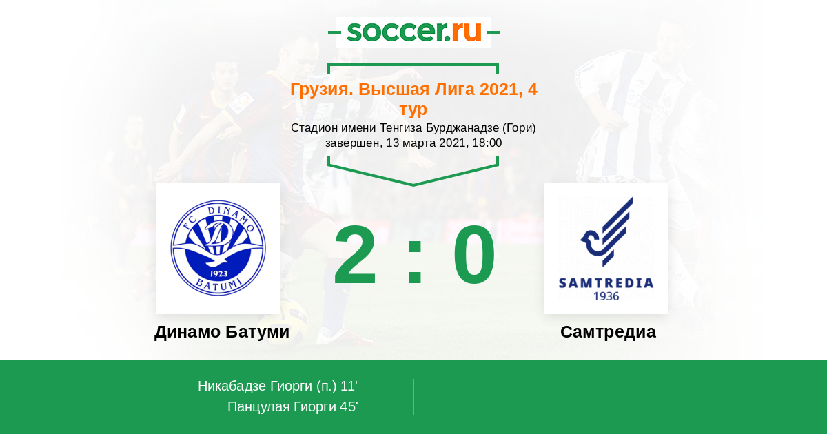 Динамо Батуми - Самтредиа: обзор матча 13 марта 2021