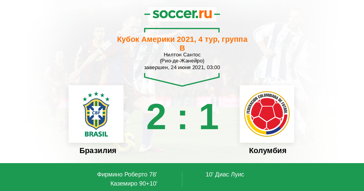 Бразилия - Колумбия: обзор матча 24 июня 2021