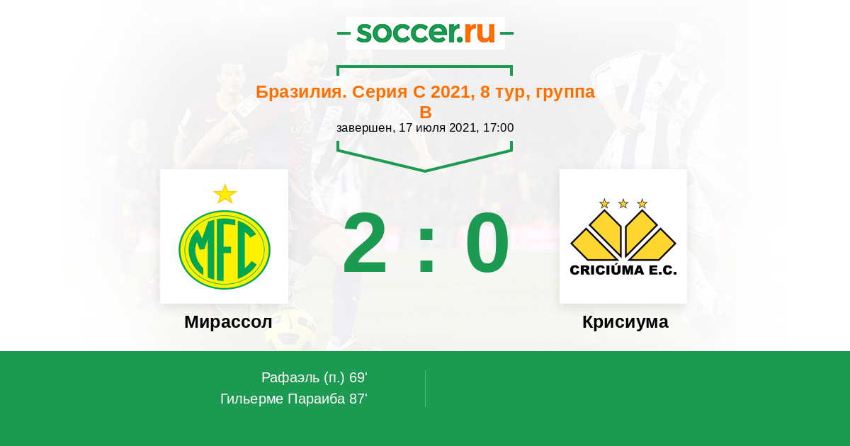 Мирассол - Крисиума: обзор матча 17 июля 2021