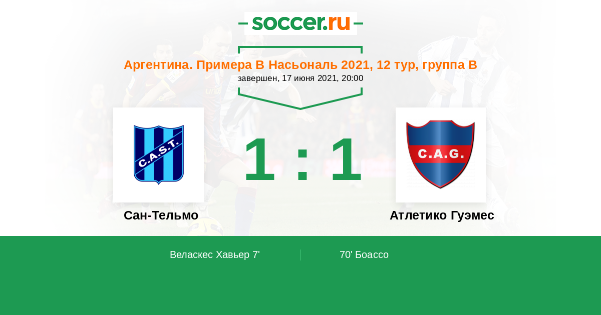 Сан-Тельмо - Атлетико Гуэмес: обзор матча 17 июня 2021