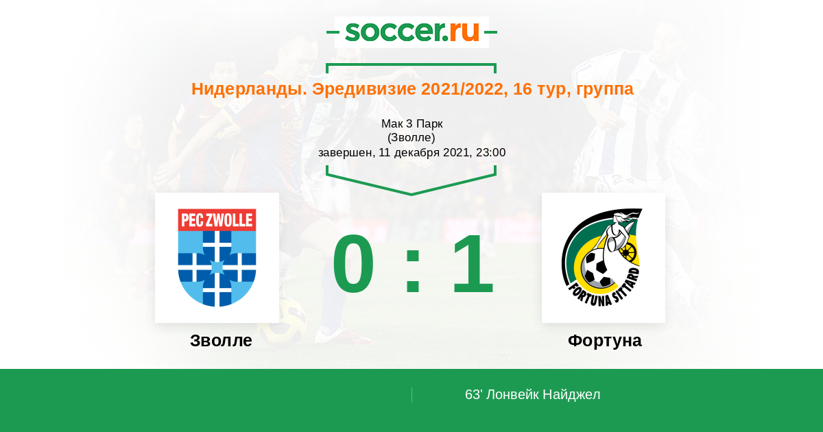 Зволле - Фортуна: обзор матча 11 декабря 2021