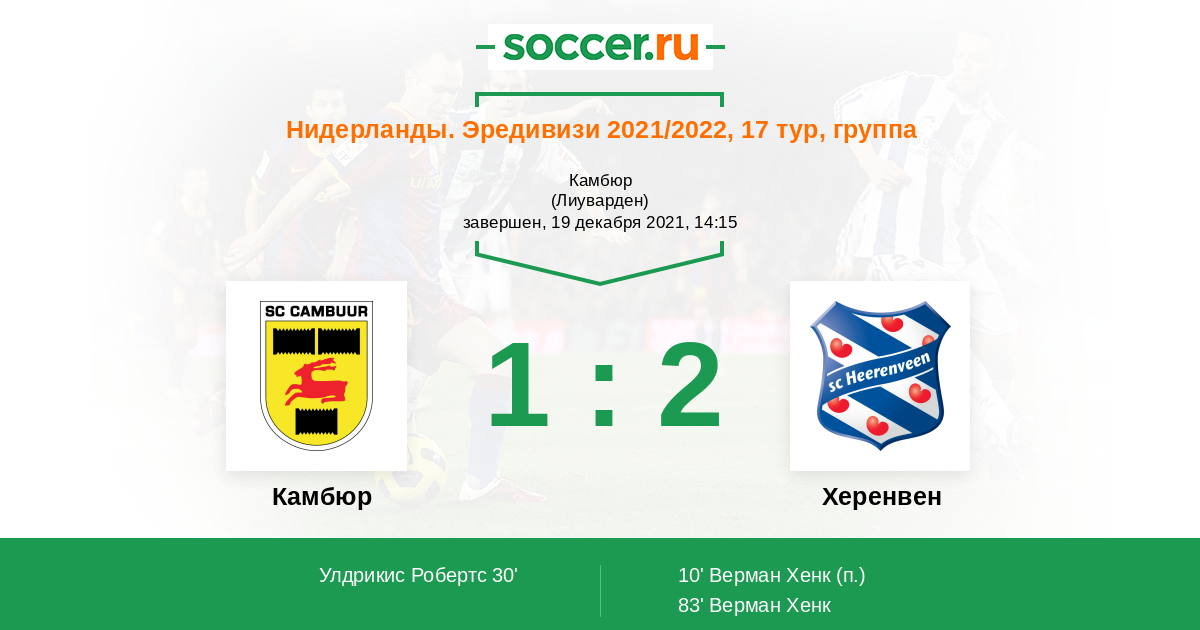 Камбюр - Херенвен: обзор матча 19 декабря 2021