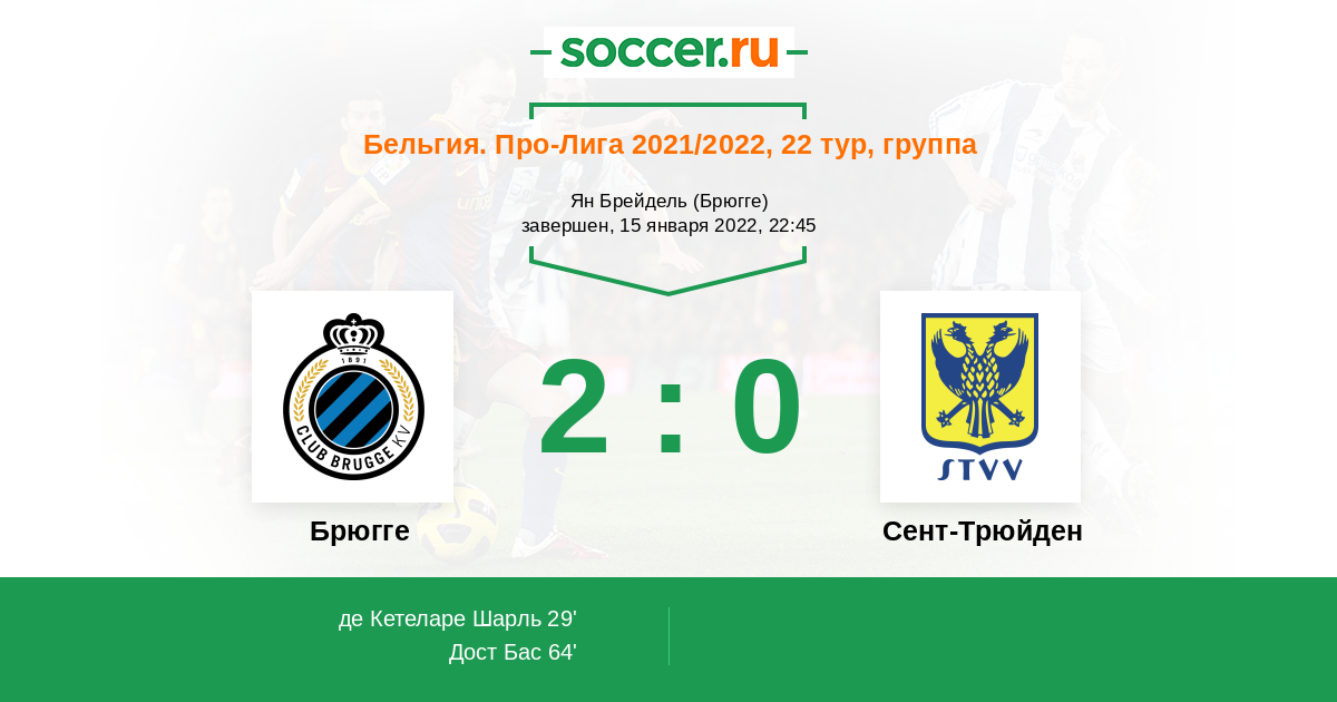 Брюгге | 34 | 21 | 9 | 4 | 12 | 72:37 | 72 |