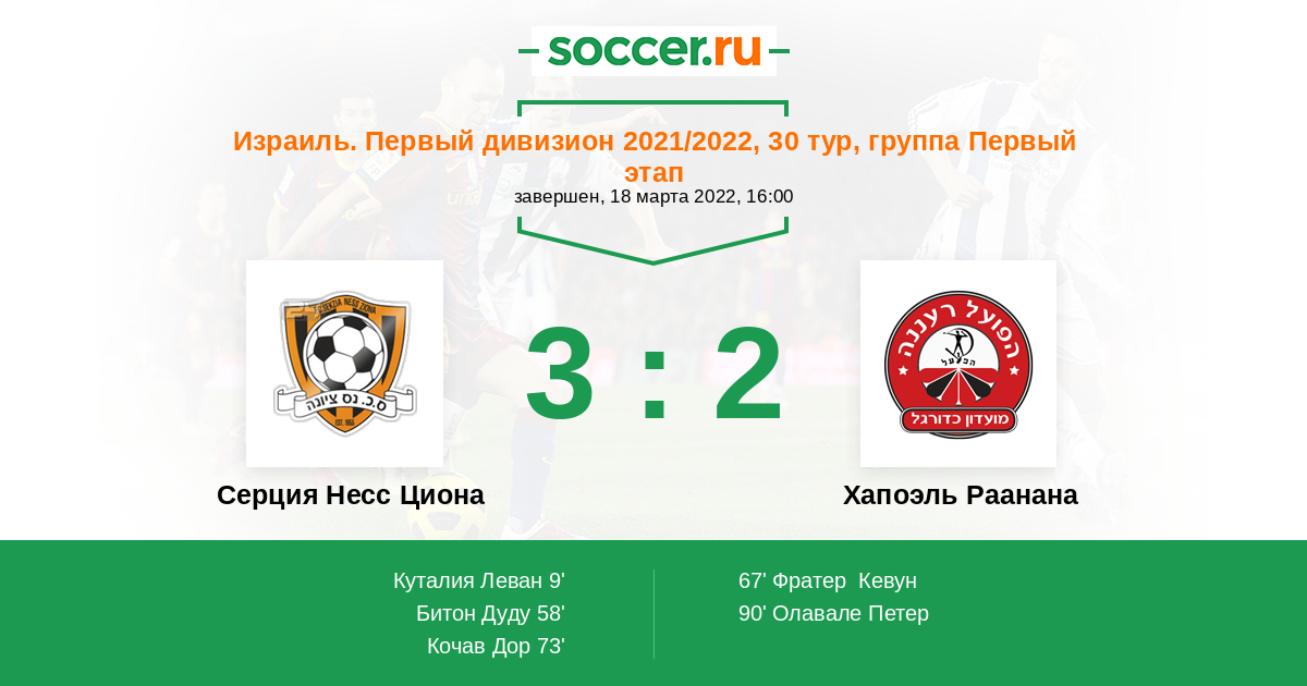 Серция Несс Циона - Хапоэль Раанана: обзор матча 18 марта 2022