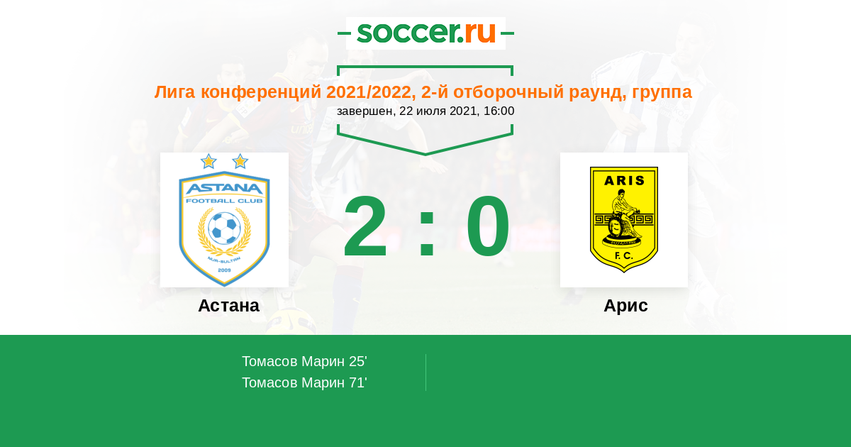 Астана - Арис: обзор матча 22 июля 2021