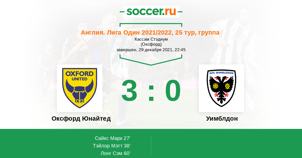 Оксфорд Юнайтед - Уимблдон: обзор матча 29 декабря 2021