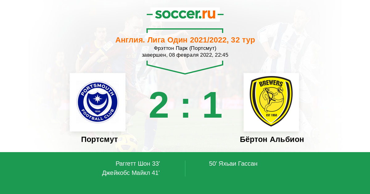 Портсмут - Бёртон Альбион: обзор матча 8 февраля 2022