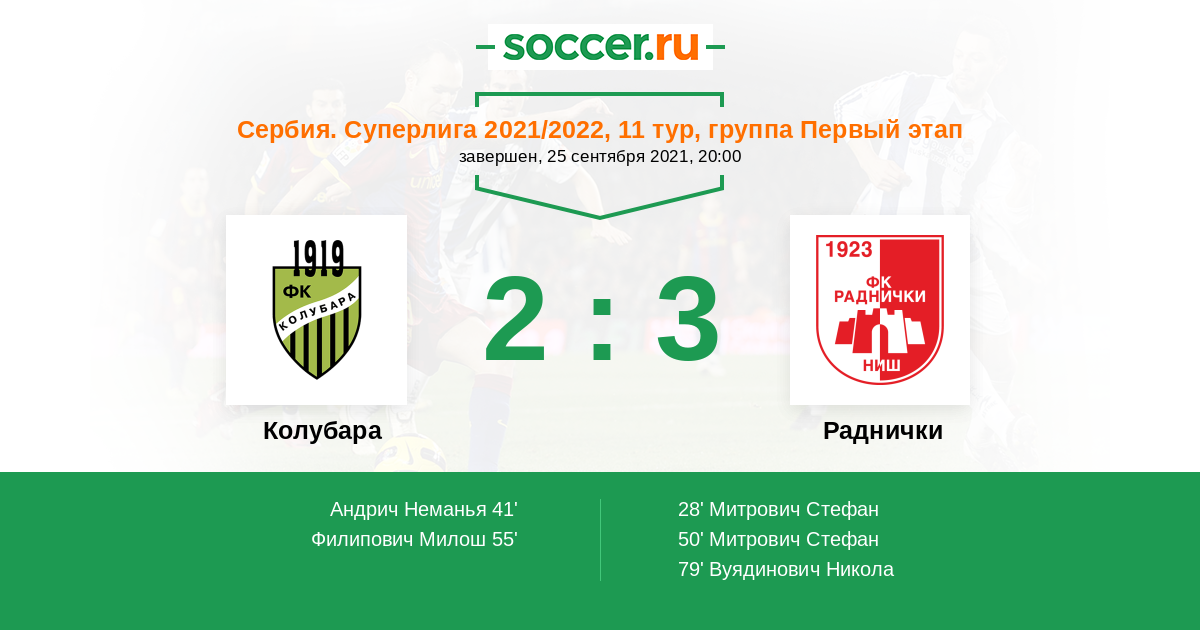 Колубара - Раднички: обзор матча 25 сентября 2021