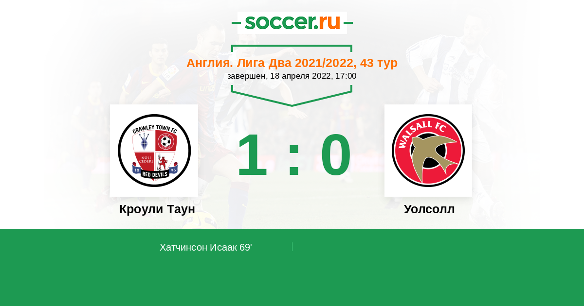 Кроули Таун - Уолсолл: обзор матча 18 апреля 2022