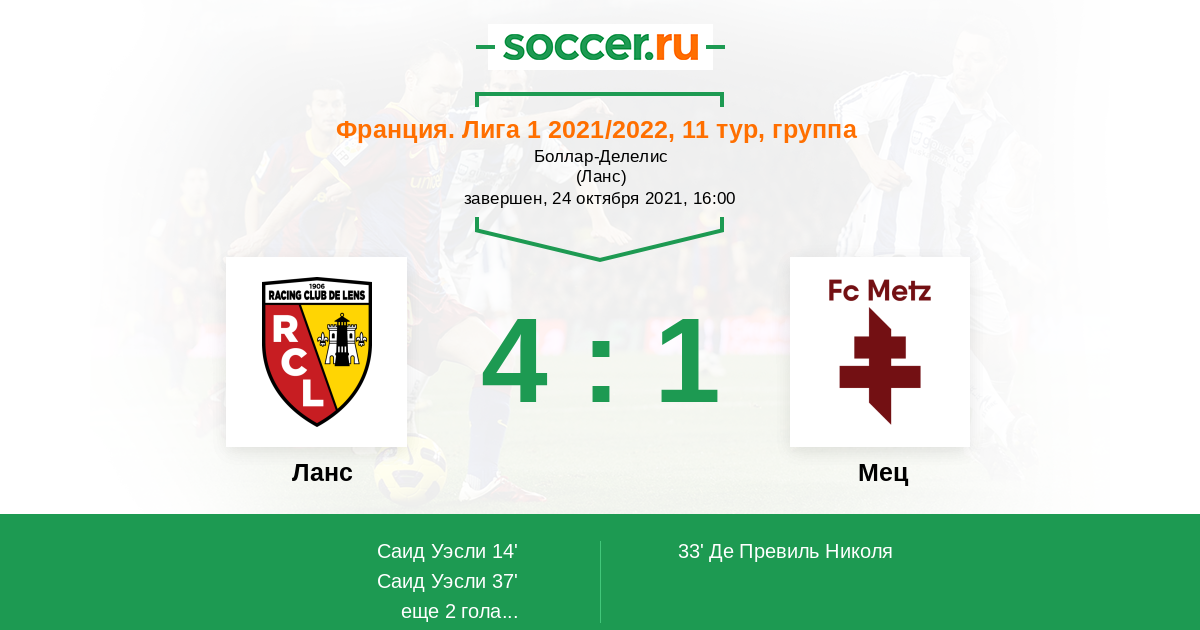 Ланс очень удачно начал этот чемпионат и находится в группе лидеров и даже может мечтать о месте в Лиге Чемпионов. Мец традиционно плетется в хвосте турнирной таблицы. На данный моент Ланс сильнее Меца.