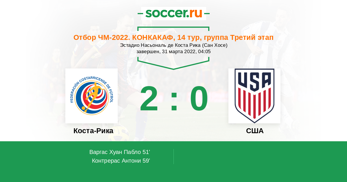 Коста-Рика - США: обзор матча 31 марта 2022