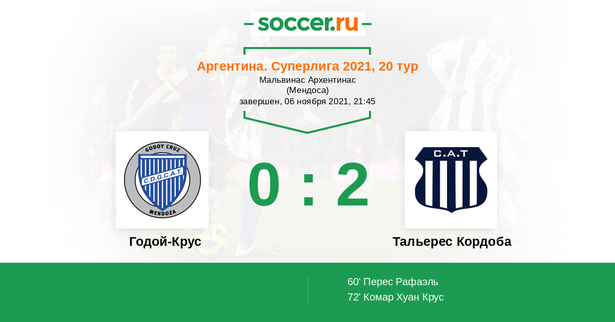 Годой-Крус - Тальерес Кордоба: обзор матча 6 ноября 2021