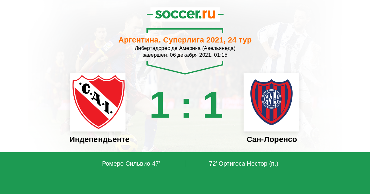 Индепендьенте - Сан-Лоренсо: обзор матча 6 декабря 2021