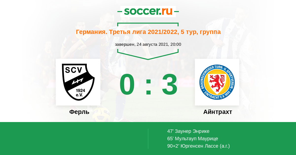 Ферль - Айнтрахт: обзор матча 24 августа 2021