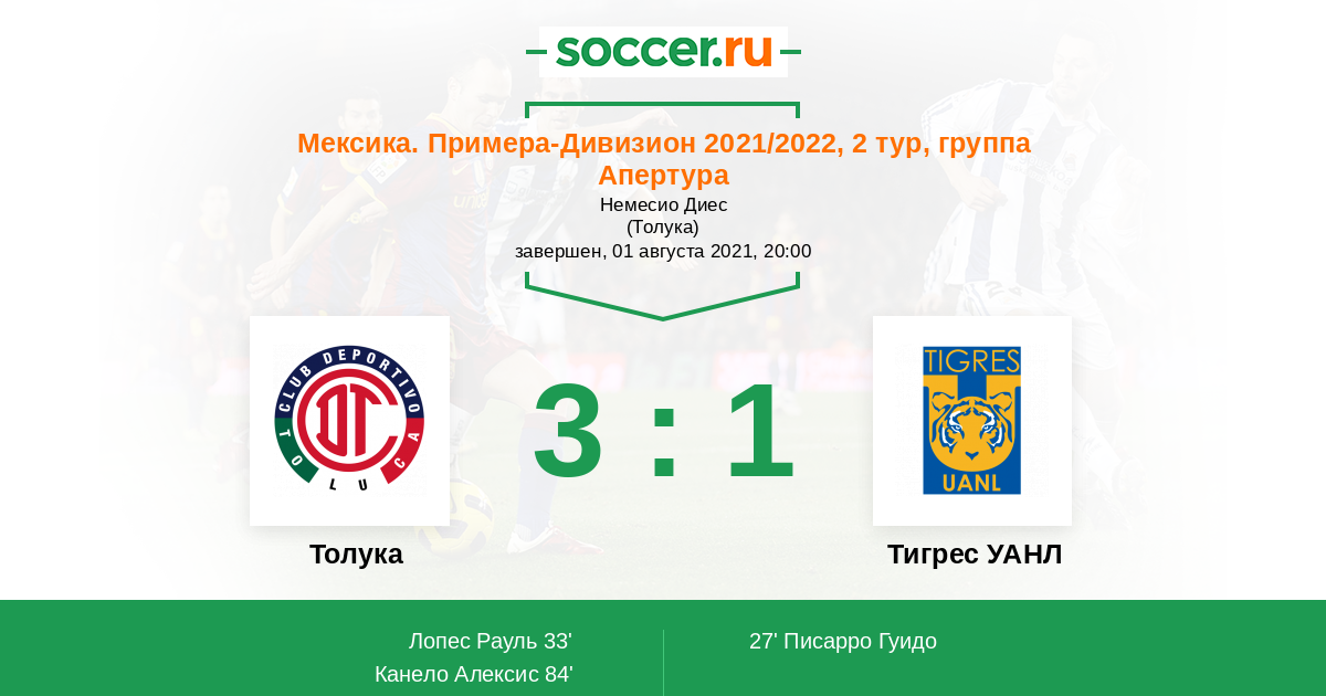 Толука - Тигрес УАНЛ: обзор матча 1 августа 2021