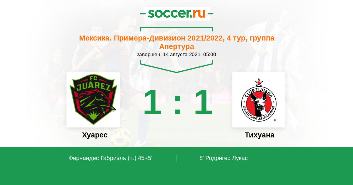 Хуарес - Тихуана: обзор матча 14 августа 2021