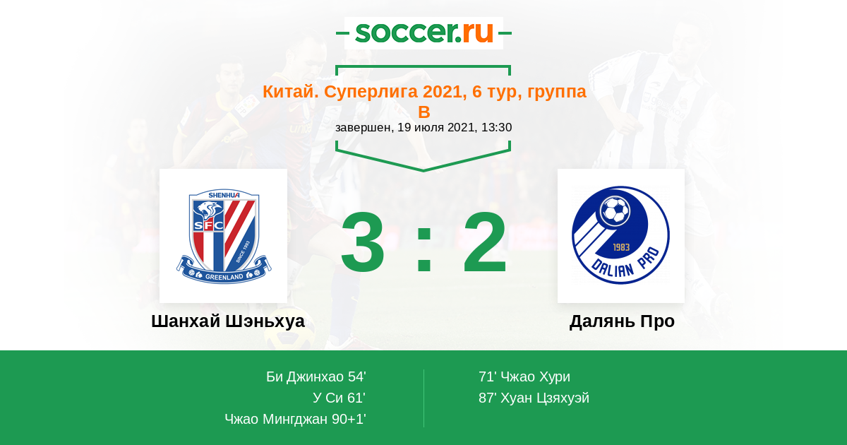 Шанхай Шэньхуа - Далянь Про: обзор матча 19 июля 2021