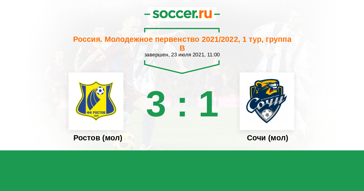 Ростов (мол) - Сочи (мол): обзор матча 23 июля 2021