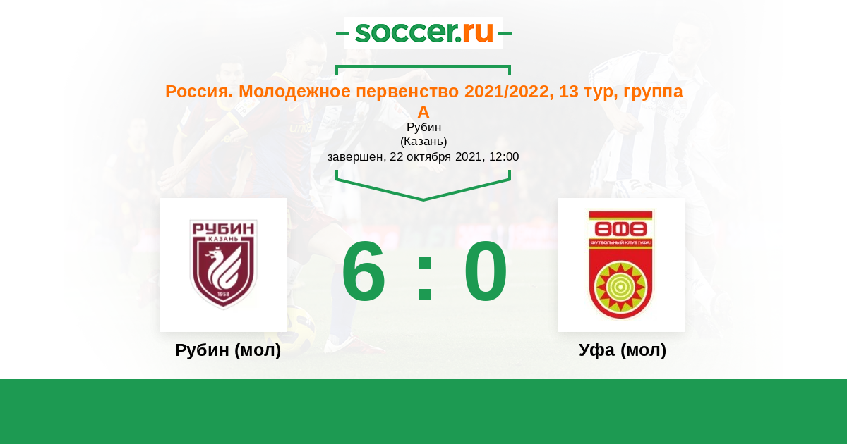 Рубин (мол) - Уфа (мол): обзор матча 22 октября 2021
