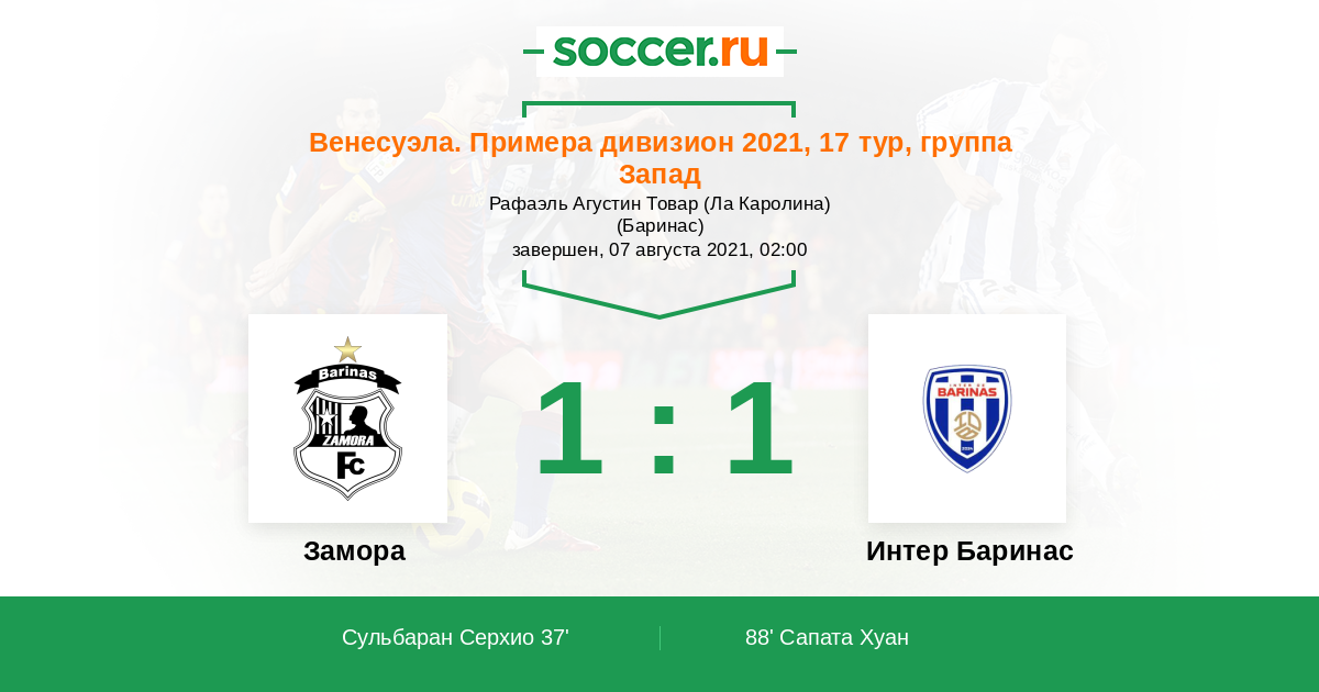 Замора - Интер Баринас: обзор матча 7 августа 2021