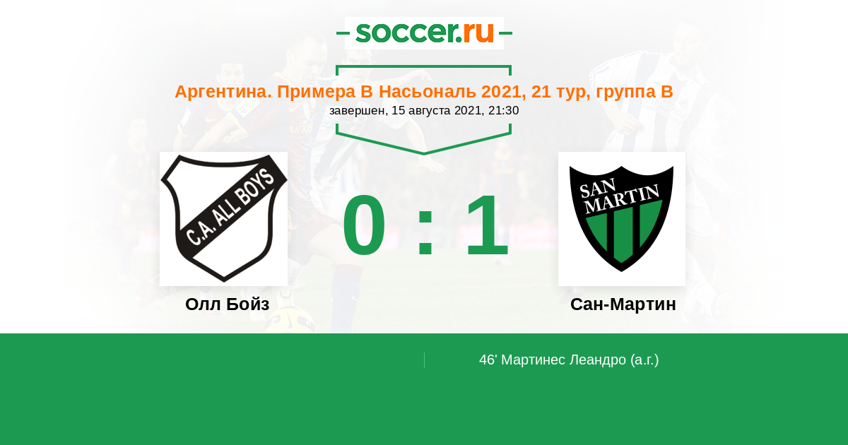 Олл Бойз - Сан-Мартин: обзор матча 15 августа 2021