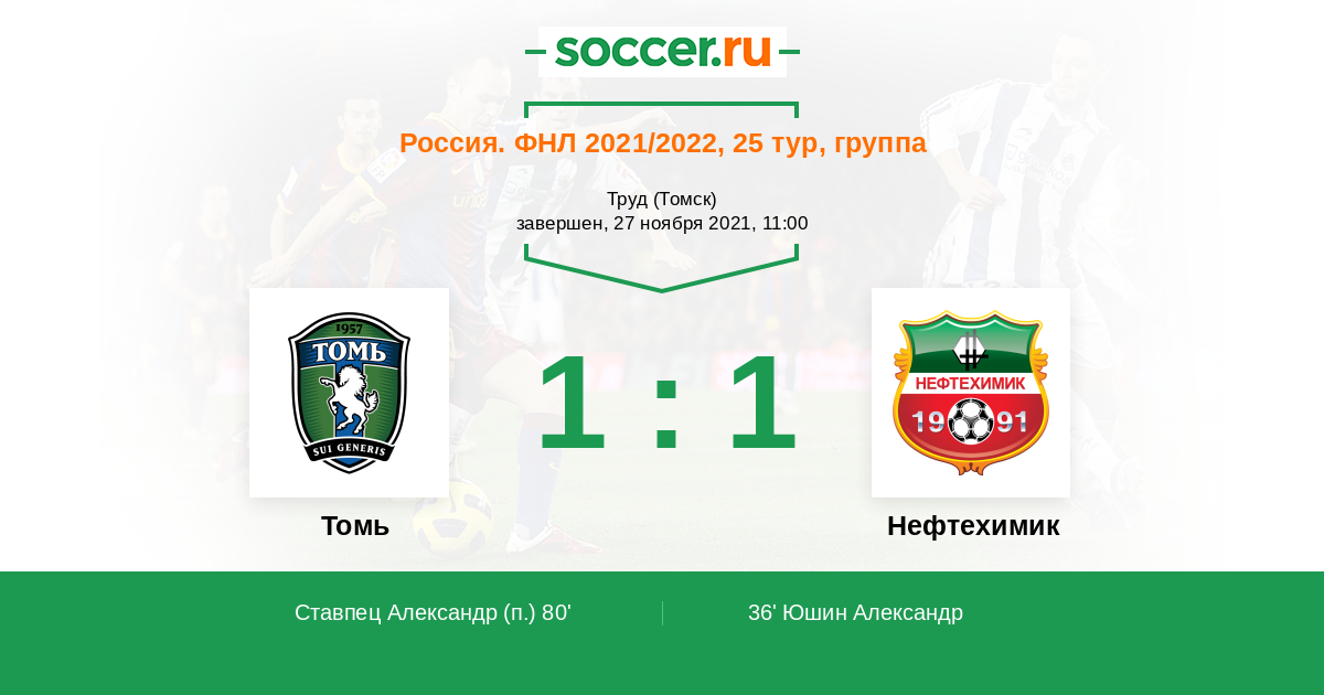 Томь - Нефтехимик: обзор матча 27 ноября 2021