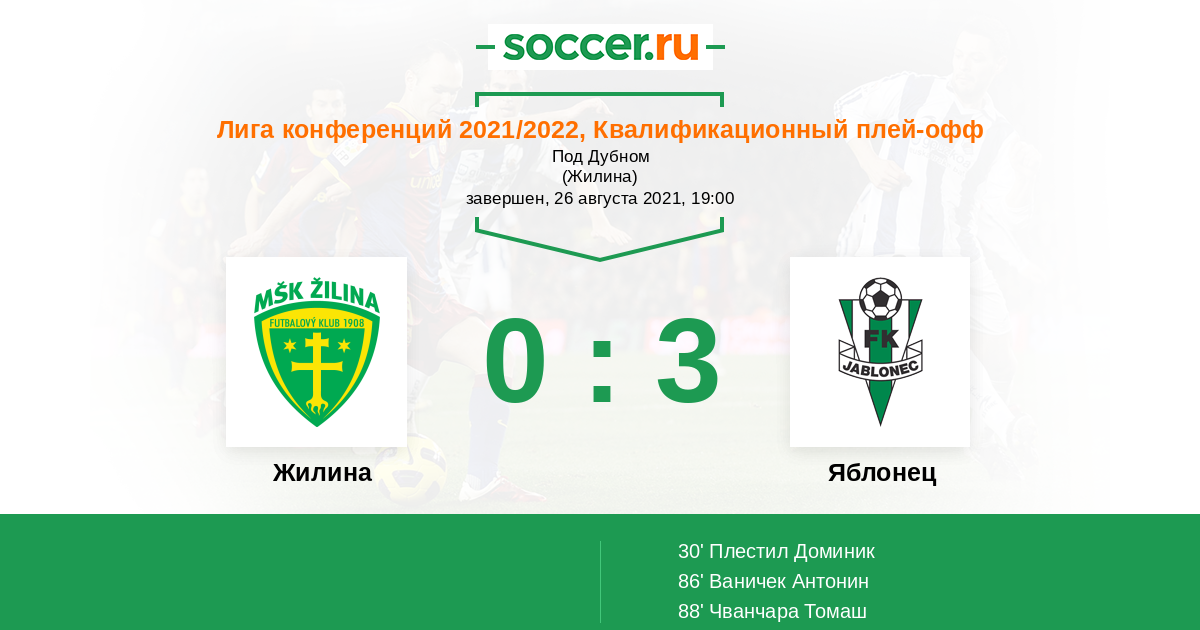 Жилина - Яблонец: обзор матча 26 августа 2021