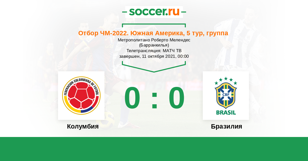 Колумбия - Бразилия: обзор матча 11 октября 2021