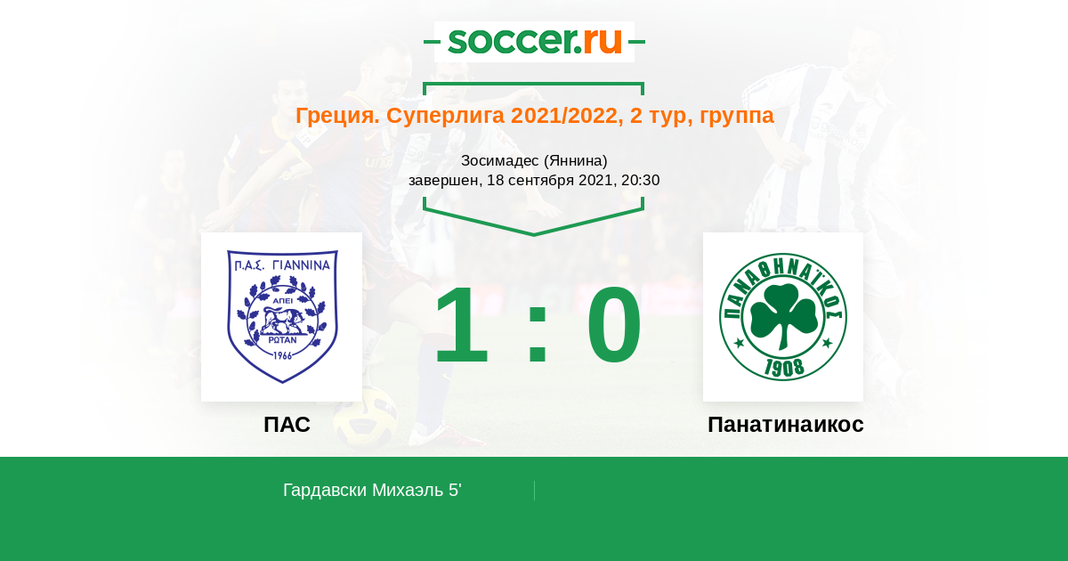 ПАС - Панатинаикос: обзор матча 18 сентября 2021
