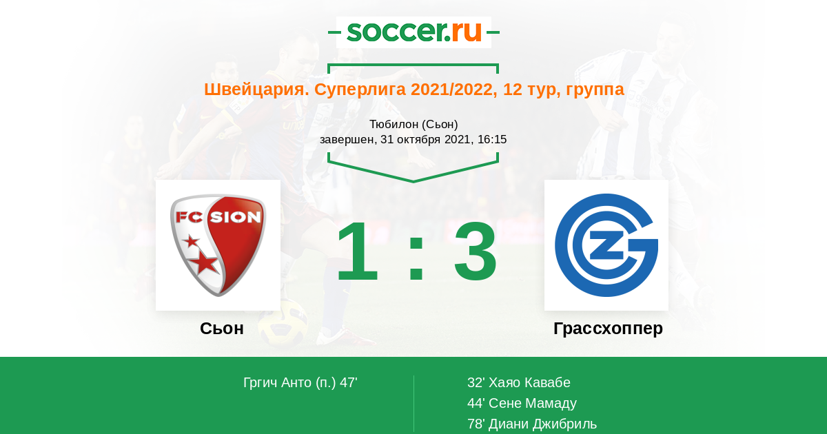 Сьон - Грассхоппер: обзор матча 31 октября 2021