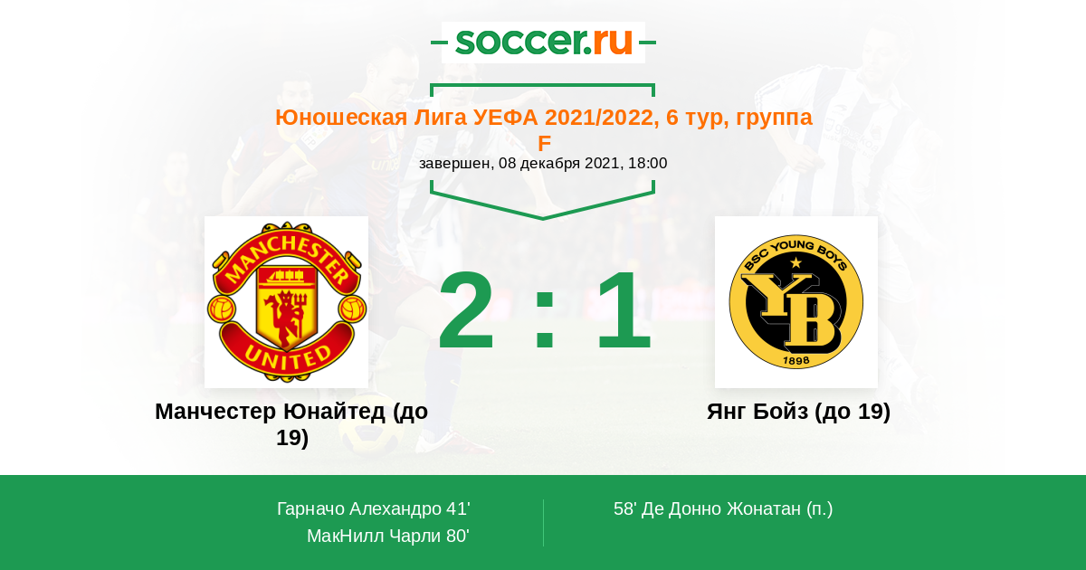 Манчестер Юнайтед до 19 6 5 0 1 1 12:9 15