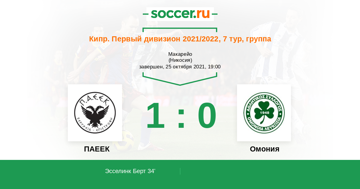 ПАЕЕК - Омония: обзор матча 25 октября 2021