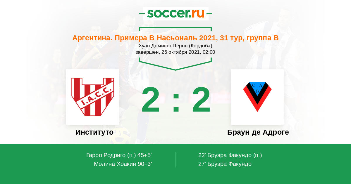 Институто - Браун де Адроге: обзор матча 26 октября 2021
