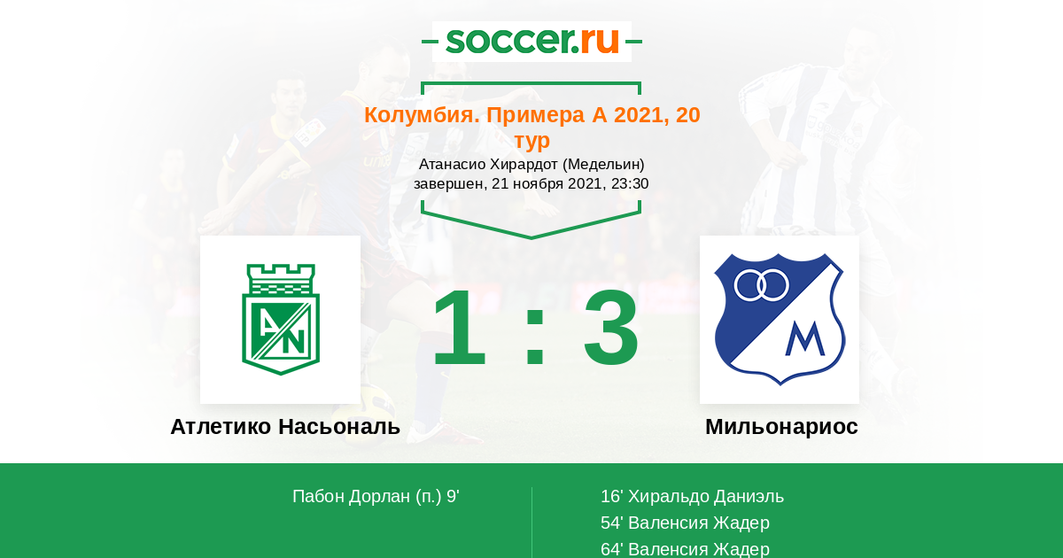 Атлетико Насьональ - Мильонариос: обзор матча 21 ноября 2021