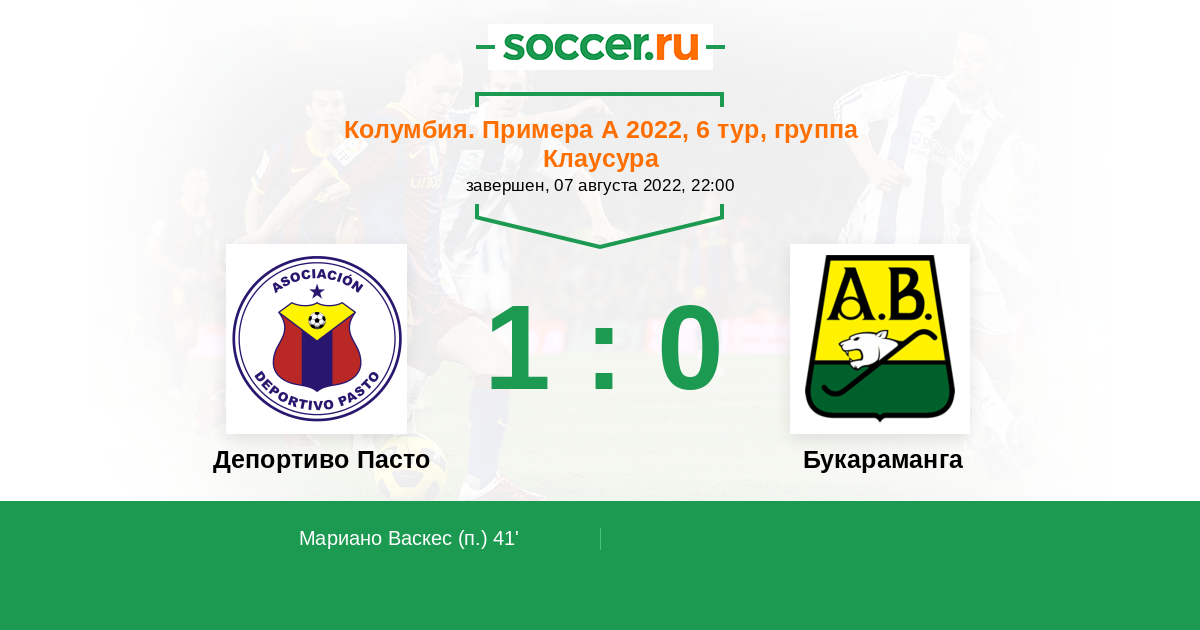| 3. | Депортиво Пасто | 6 | 2 | 2 | 2 | 3 | 6:6 | 8 |