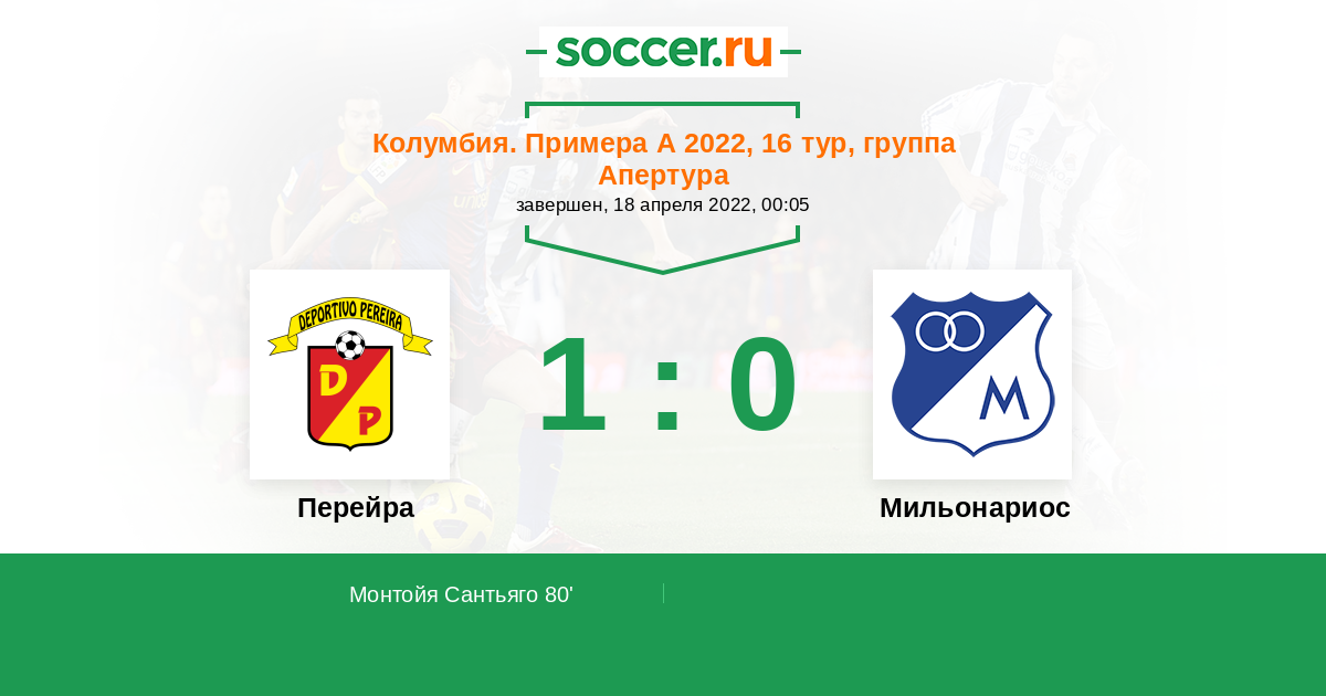Перейра - Мильонариос: обзор матча 18 апреля 2022