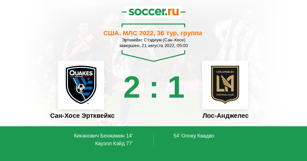 Сан-Хосе Эртквейкс - Лос-Анджелес: обзор матча 21 августа 2022
