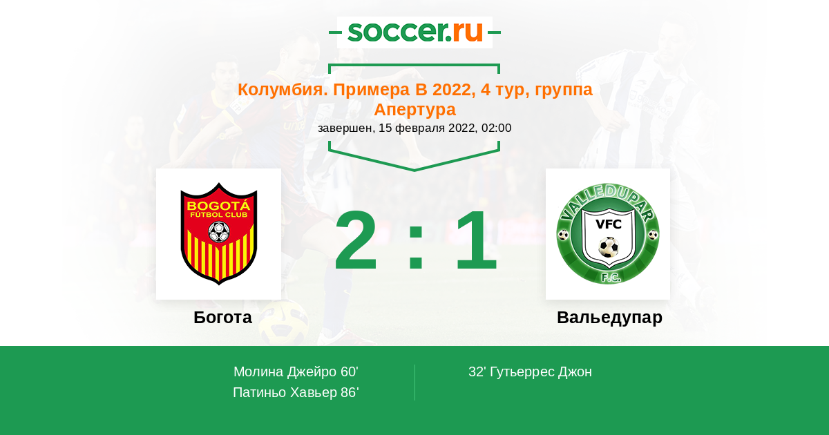 Богота - Вальедупар: обзор матча 15 февраля 2022