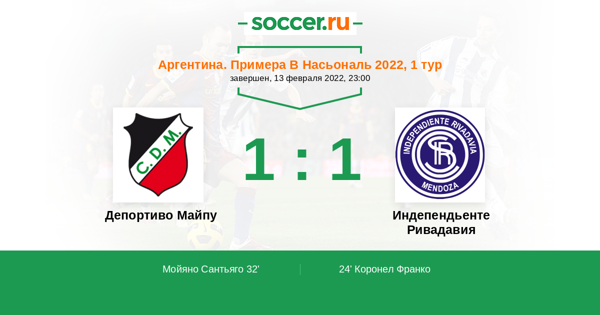 Депортиво Майпу - Индепендьенте Ривадавия: обзор матча 13 февраля 2022