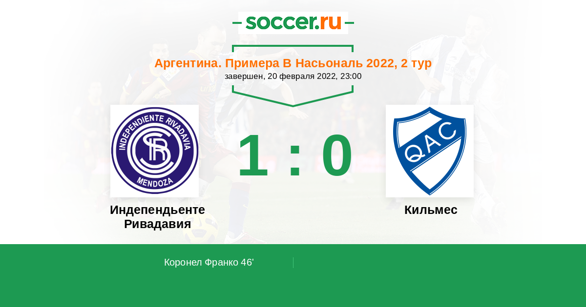 Индепендьенте Ривадавия - Кильмес: обзор матча 20 февраля 2022
